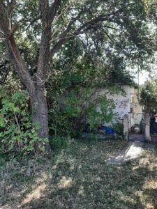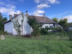 374 m2 alapterületű lakóház és udvar. A főépület földszintes családi ház, falazata kő, életkora kb. 110 év, bontásra érett. Alapterülete 50 m2, helyiségei: 1 szoba, konyha, kamra, előszoba. Fűtése hagyományos, vezetékes víz, villany van.